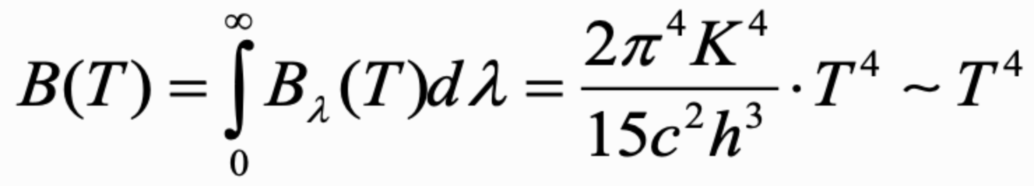 - 黑体辐射公式(普朗克定律):$B_\lambda(T)=\frac{2hc^2}{\lambda^5}\frac{1}{e^{hc/\lambda KT}-1}$