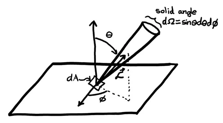 (全球立体角是$4\pi$,半球是$2\pi$,立体角的单位是$\mathrm{sr}$,steradian)